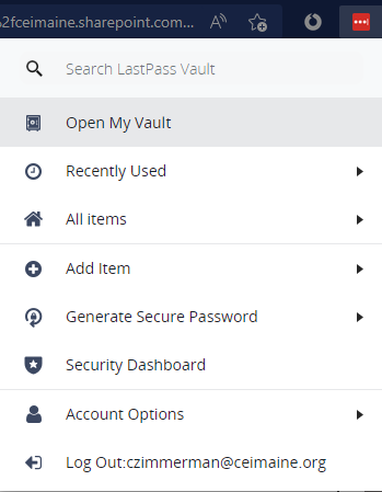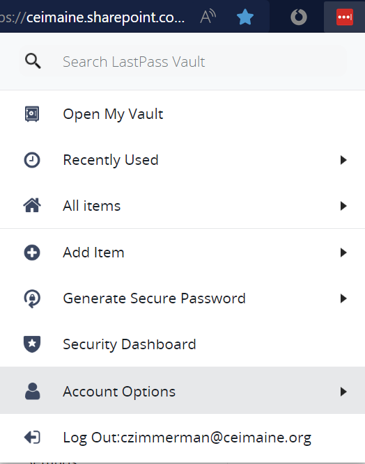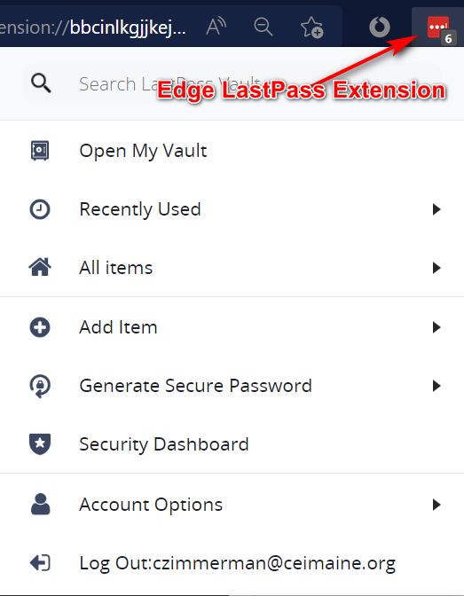 Select the LastPass Extension in the Edge browser. If you are signed out, you will have to sign in. Your sign in address may be prefilled, select sign in. If not: